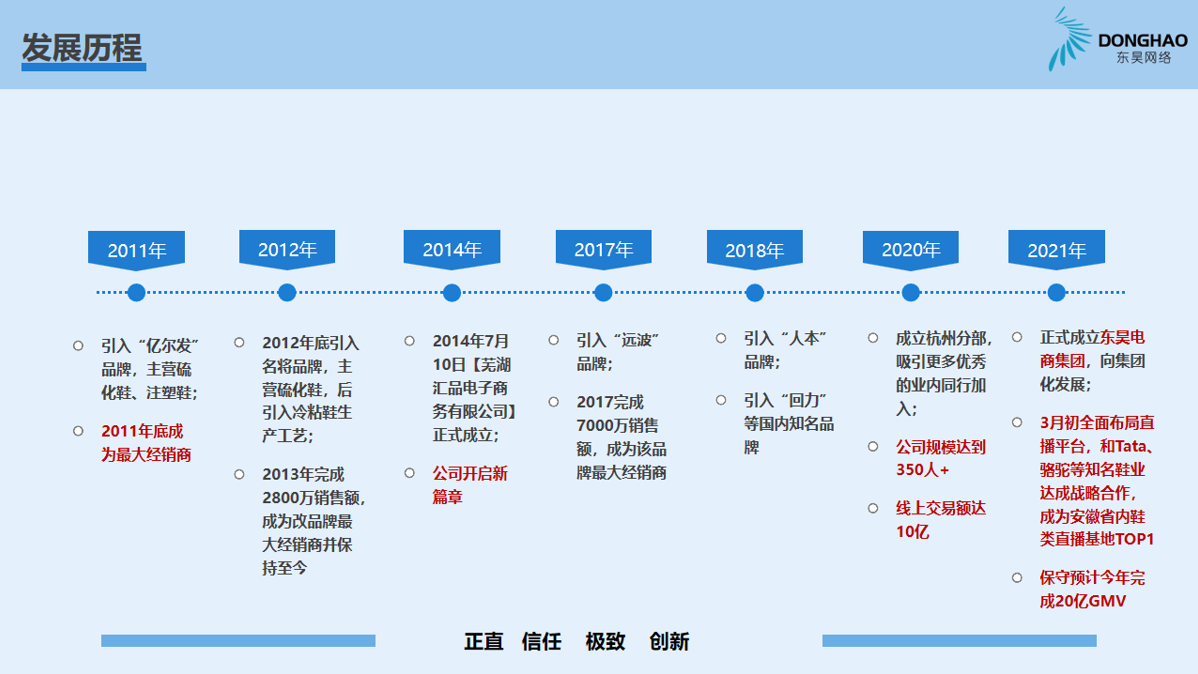 蕪湖東昊網(wǎng)絡(luò)科技有限公司,成立于 2014 年,是一家以互聯(lián)網(wǎng)平臺銷售為核心的電子商務(wù)運營商,公司成立以來,始終專注于休閑運動鞋的互聯(lián)網(wǎng)銷售業(yè)務(wù),產(chǎn)品線覆蓋硫化鞋、注塑鞋、冷粘鞋,在互聯(lián)網(wǎng)二級類目單品牌排名前三,綜合成績排名TOP1;